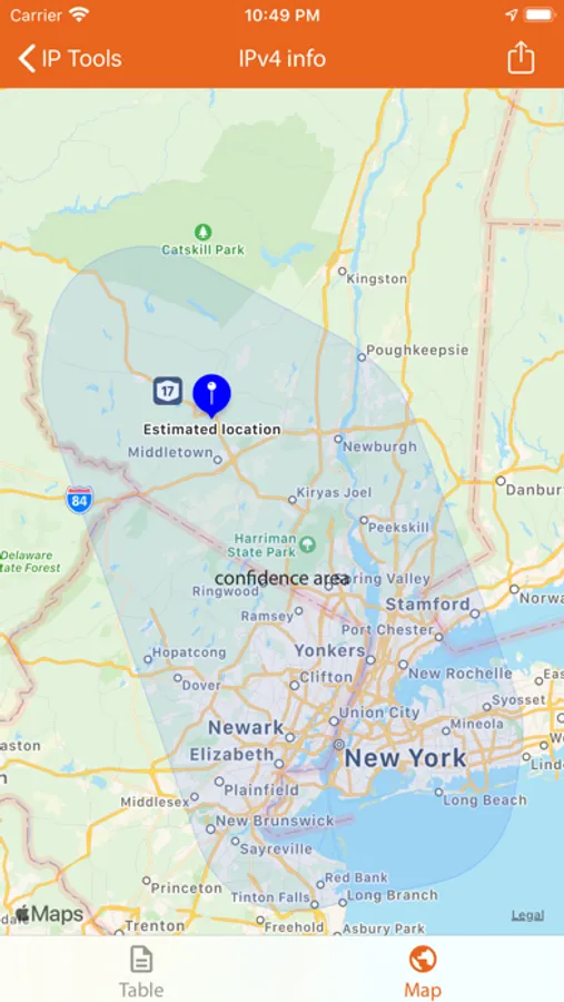 'My IP Geolocation' - an easy way to receive your public IP geolocation such as county, city, postcode, internet service provider (ISP) and estimated location coordinates with high precision. This can be compared to GPS coordinates on your device and visualized in 'Confidence area' submenu.