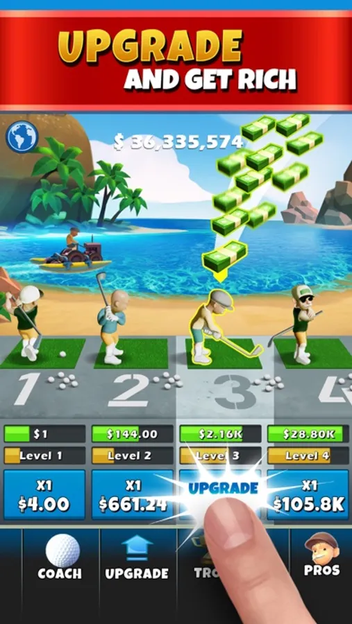 • Earn TROPHIES to gain an infinite BOOST to income!