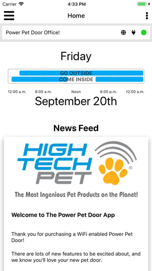 The High Tech Pet Power Pet Door app controls your WiFi enabled Power Pet Door.