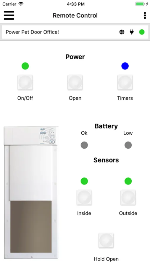 Control your Power Pet Door from anywhere in the world, as if you were standing right in front of it. You can remotely open it, enable or disable the sensors, and even turn the door off and on.