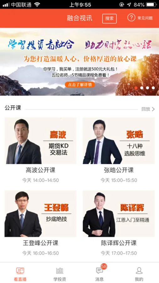 融合视讯能创造价值的互联网视频金融服务平台!合作讲师近百人,学员已超过一万人,每天直播在线人数超三千人!您可以在这里找到心仪的讲师,并与讲师一对一“零距离”共同进步成长,在理财的道路上选择适合自己的一条捷径!