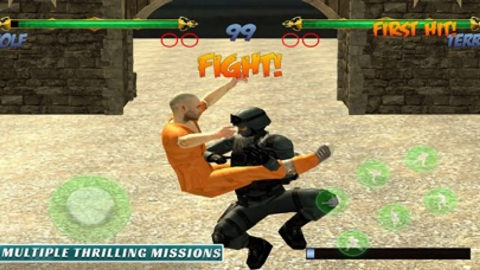 Police Fight Crime Escape is an stimulating arcade fighting action game,action paked games,kung fu master games Fight when Prisoner enter your area and you fight like a karate master intense battle.Upgrade your Army power, energy, and accuracy with new kick and fighting styles earn points for each winning match.Fight against powerful border army fighters rivals, win over them and get points to unlock new army fighter of your evolution. Use your fighting skills to make your way out easy and simple.
