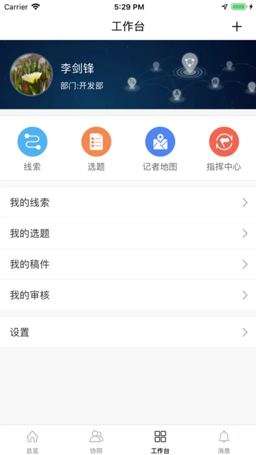 融媒体工作平台是基于互联网,面向融媒中心,支持业务流程再造,提供线索汇聚、选题策划、任务协同、采编协作、媒资管理、指挥调度、评估评价的一体化工作平台。兼容电视、广播、报纸、新媒体生产流程,重点实现“信息汇聚、一体策划、资源调度、业务串联、协同联动”。系统包括PC端和移动端,两端互通,信息驱动任务,任务串联流程。