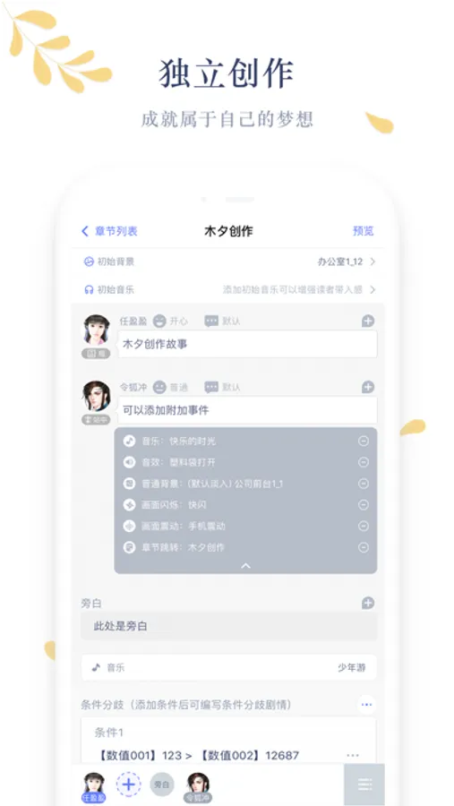 在木夕阅读,你可以读到具有交互体验的互动阅读作品,也可以通过简单的操作,创作出属于自己的互动阅读多结局故事。
