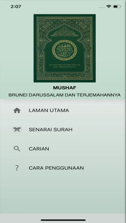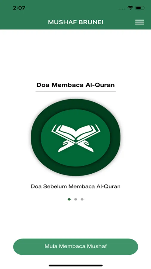 Mushaf Brunei Darussalam mobile app is a platform that act as a platform to teach the members of the public on how to properly recite the Surah in the Al-Quran. It also encourages the public to recite the Al-Quran in a daily basic. The main functionality of this mobile app is to display the mushaf that is approved by the Ministry of Religious Affairs and to listen to the recitation of all the Surah in the Al-Quran.