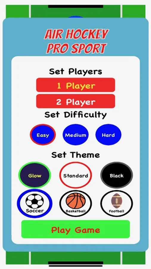 Air hockey on your phone. 1 player or 2 players. Includes sport themes. Multiple levels included.