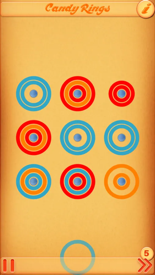Candy Rings is an addictive Puzzle Game. Your goal is simple. You can clear rings by matching the same color in any direction (horizontal, vertical or diagonal). Rings can also be cleared if the same color is placed in a slot in all 3 available puzzle sizes. There are smaller medium and bigger types of rings that you have to place in the slots (dots) on the screen or discard them.