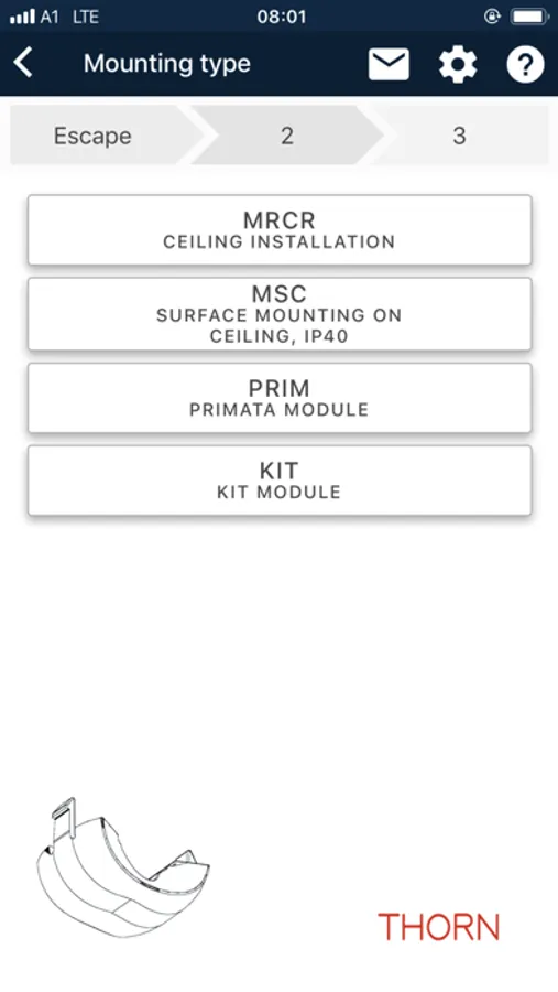 - Display of the article number of the luminaire incl. mounting accessories. Link to the datasheets on the Thorn homepage.