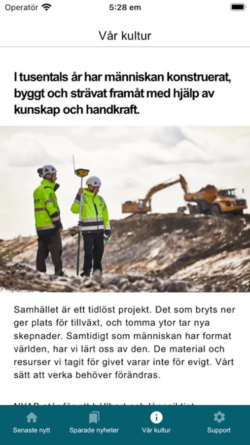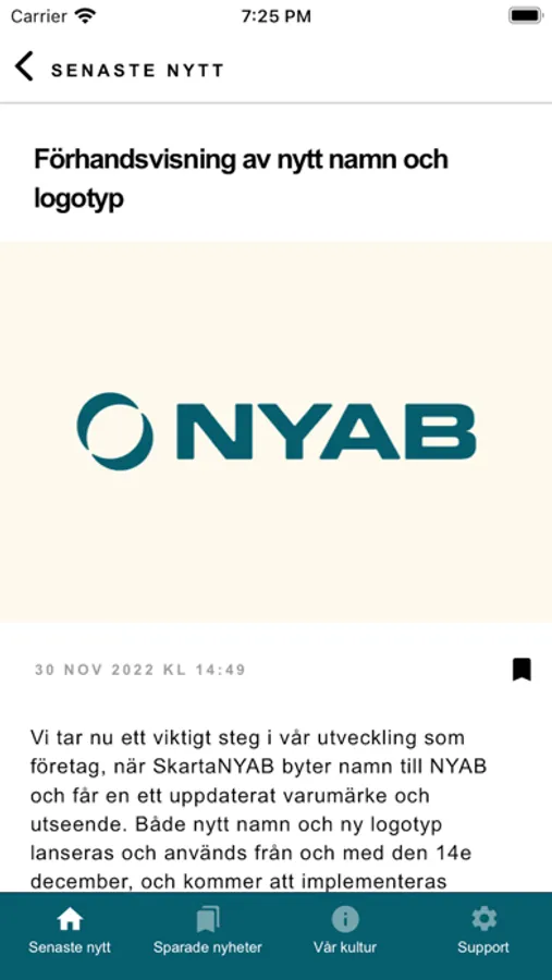 NYAB App är en central plattform för information och gemenskap för NYAB-koncernen. Appen distribuerar relevant information och uppdateringar om exempelvis nya projekt och kontrakt, förändringar i organisationen, nya lagar och regler samt presentation av nya medarbetare och alla samarbetspartners.