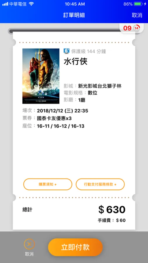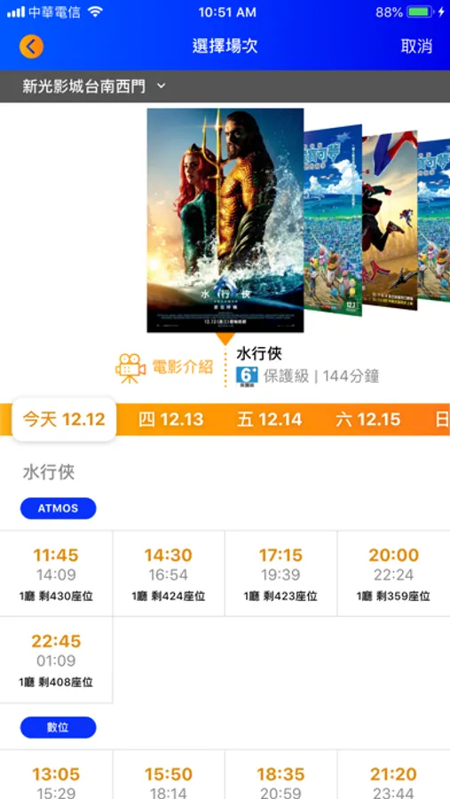 2. 完整的電影介紹,提供即時查詢劇情、預告、日期、場次、座位,手機線上直接劃位,搶票最快速!