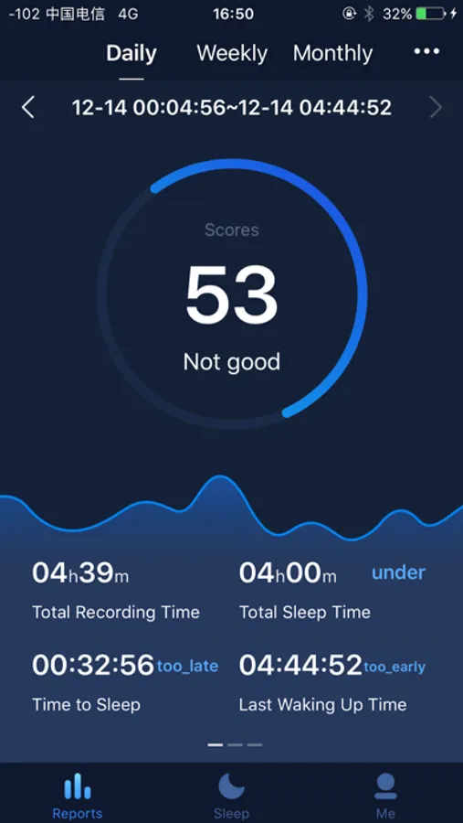 - Daily, monthly and annual report analysis: Eight reports with failed scores in a month result from whether working too late or going through WeChat moment? Monthly report helps you better understand your own sleep regulations.