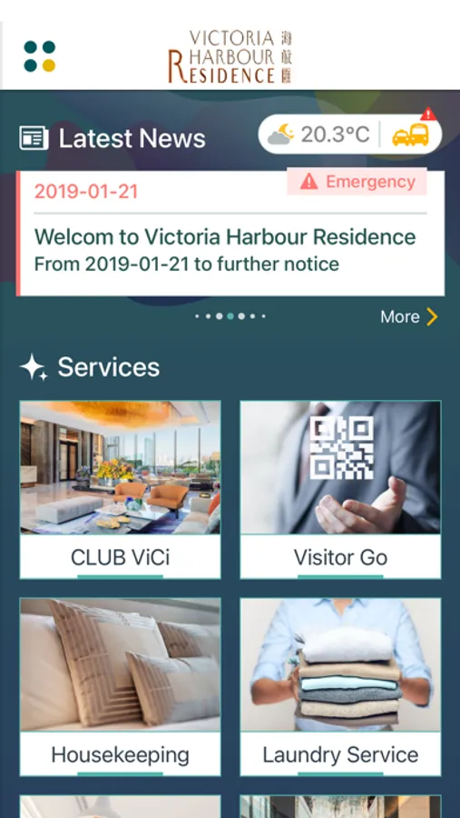 "Victoria Harbour Residence" is a comprehensive mobile phone application which could delivers real-time information, memos, club house and estate activities to tenants.