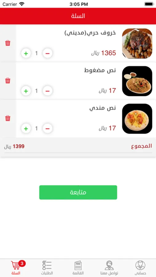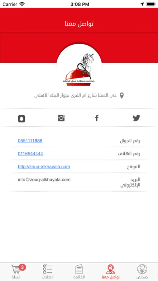• البقاء على تواصل دائم مع المطعم من خلال صفحة اتصل بنا