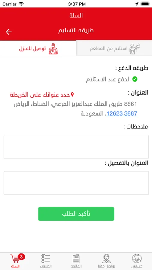 • حجز الوجبات مع تلقي اتصال من المطعم لتأكيد الطلب أو إلغاؤه.