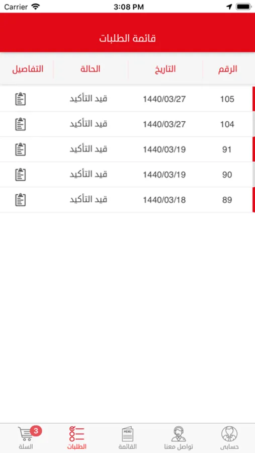 • إطلاع المشتري على كافة الطلبات التي قام بها.