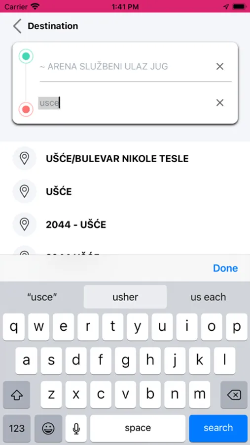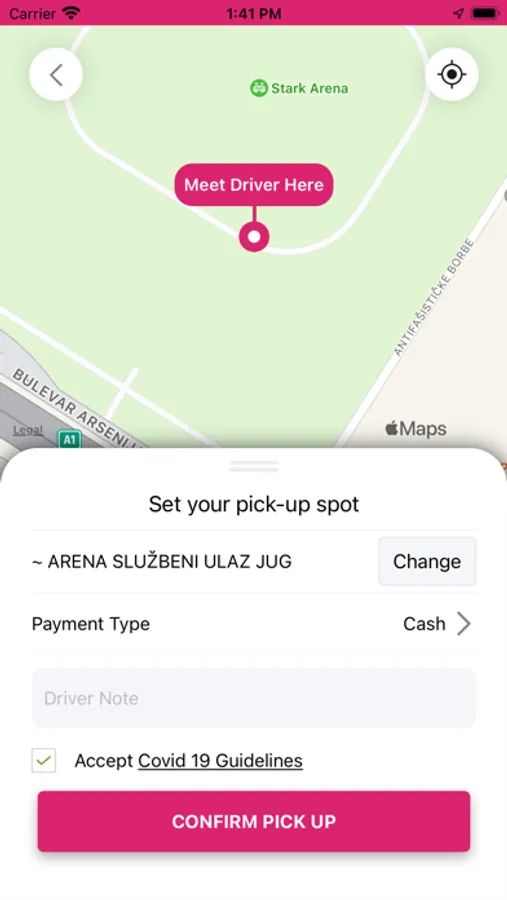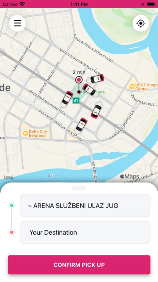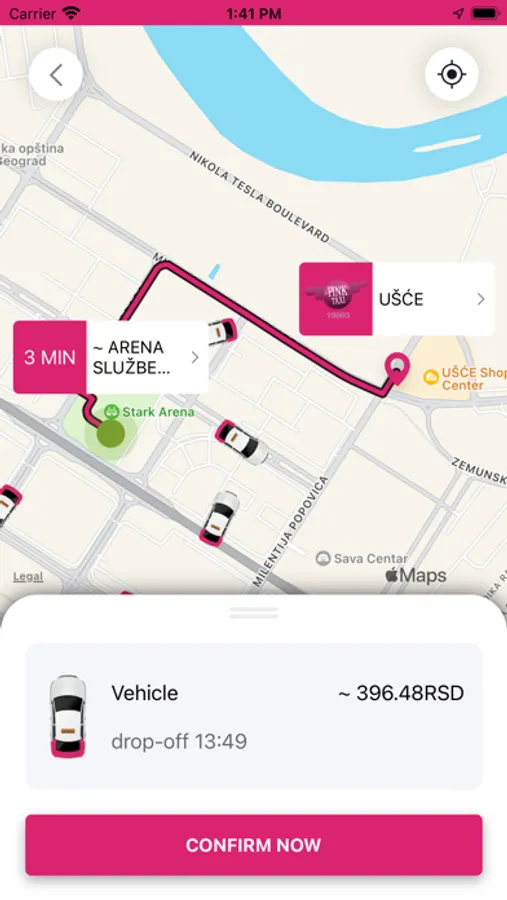 - Pink Taxi će automatski locirati vašu adresu koristeći GPS u Vašem uredjaju