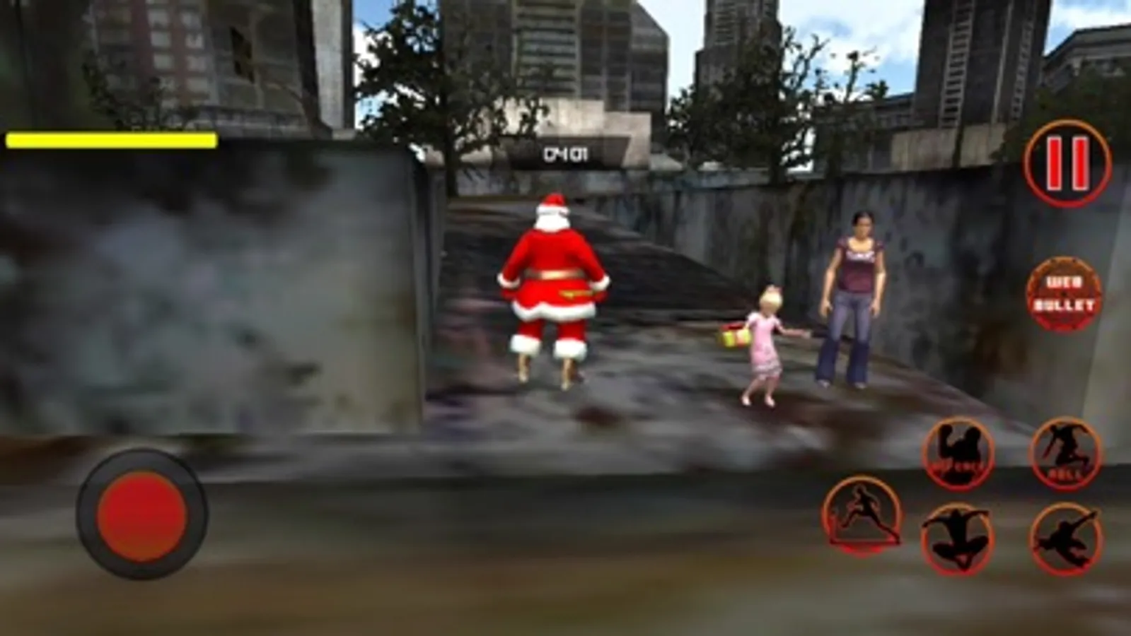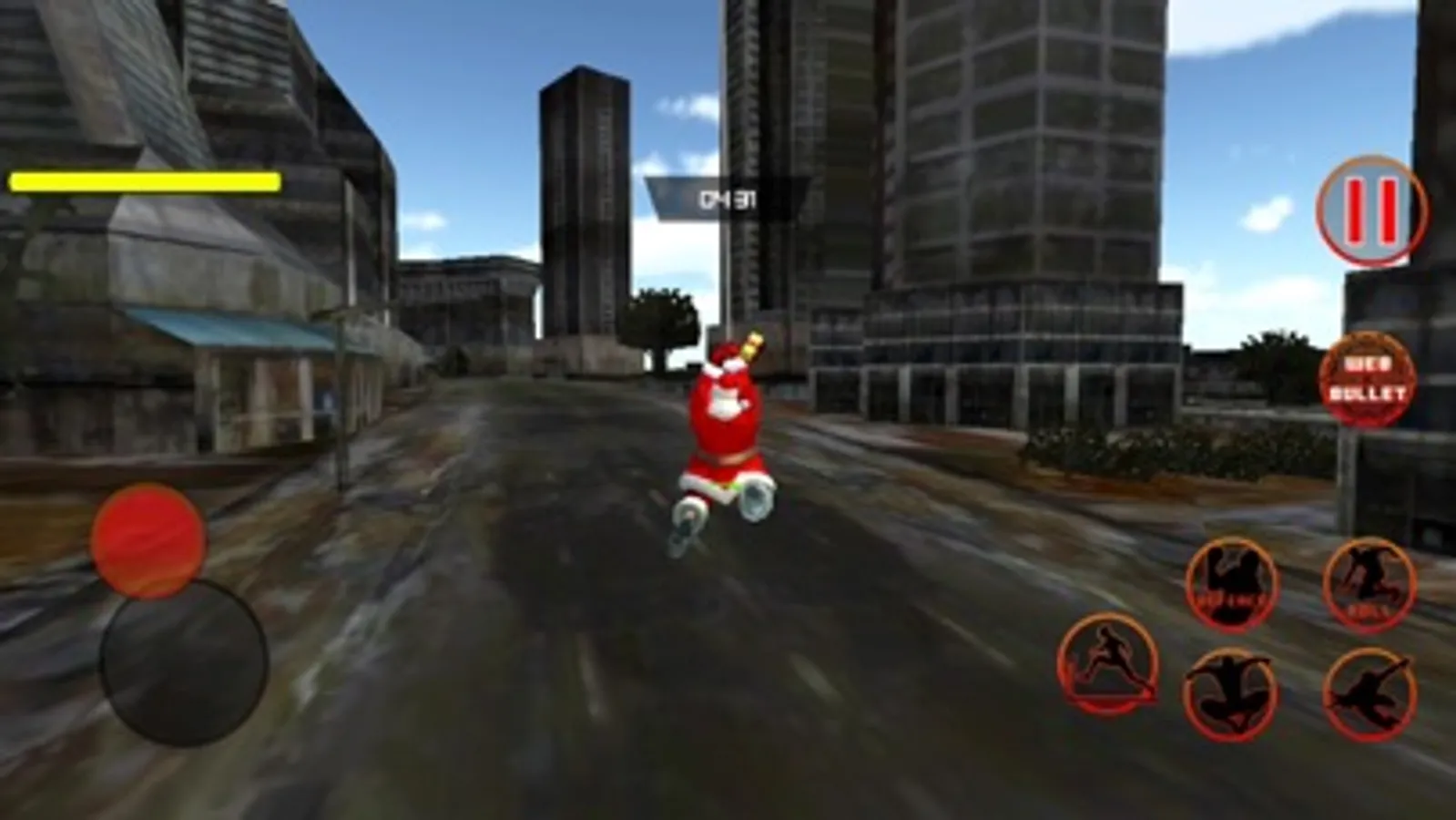 Save helpless people and their children from wield creatures and merciless villains. Free streets from drugs and crimes. Stop military pressure and secure the city from local dirty zombie cops.Use your Santa Claus Rope hero super powers and don’t let anyone escape your anger. Swing Around the city and find the outlaws.
