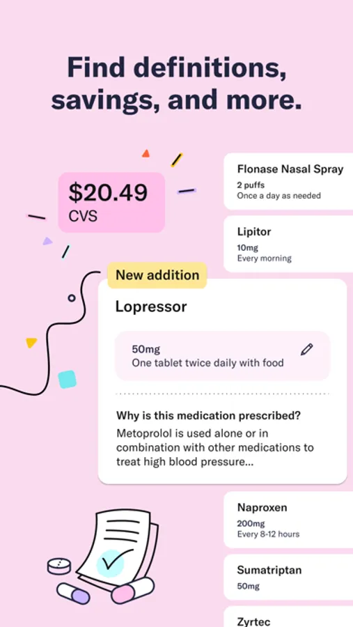 Track the medications you’re taking in one spot, right inside the medication list. Add medications, dosages, and instructions. Review medication basics, such as how to safely use the medication.