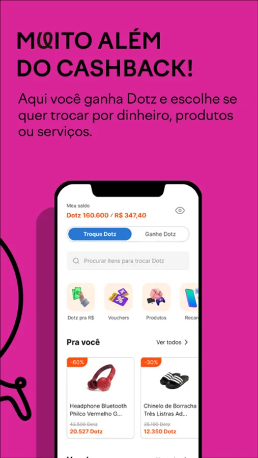 E a melhor parte: trocar seus Dotz pelo que quiser, de produtos a cashback!