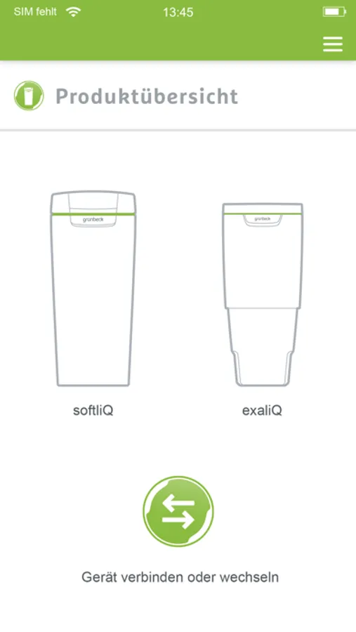 The app enables communication with the Grünbeck products softliQ: SD / MD / SC / MC and exaliQ dosing systems
