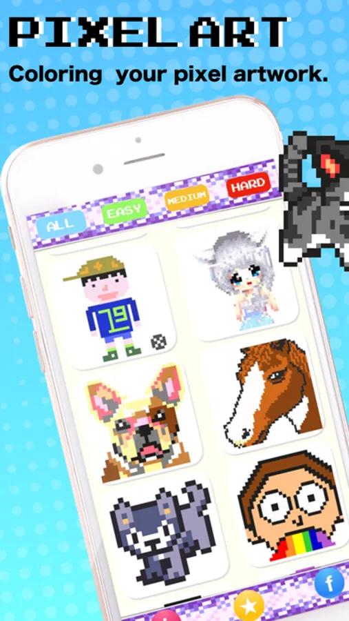 Simple and fun! Anxiety painting games challenge you to make completed your pixel art. It's true anti-stress activity, Relax & Enjoy!