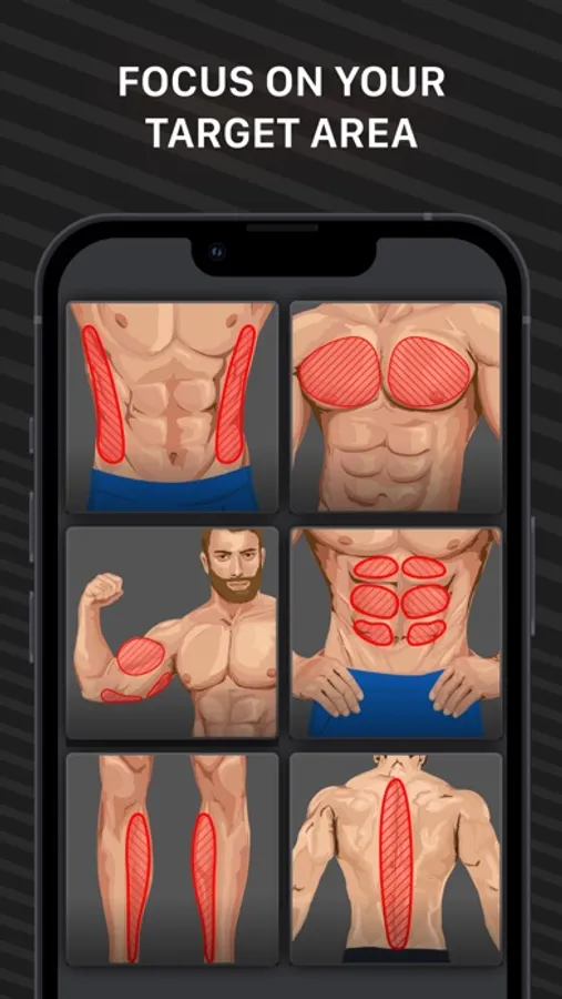 Select the zones that you want to work on: shoulders, chest, arms, back, belly, legs