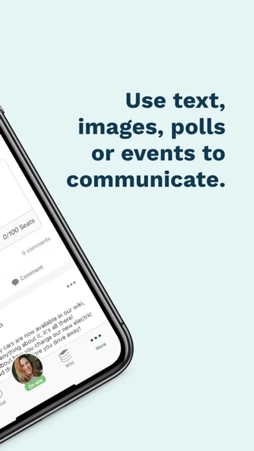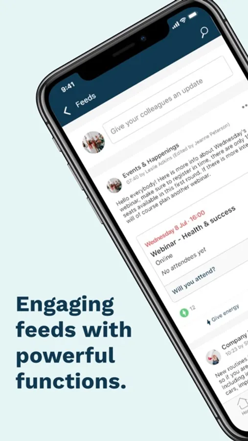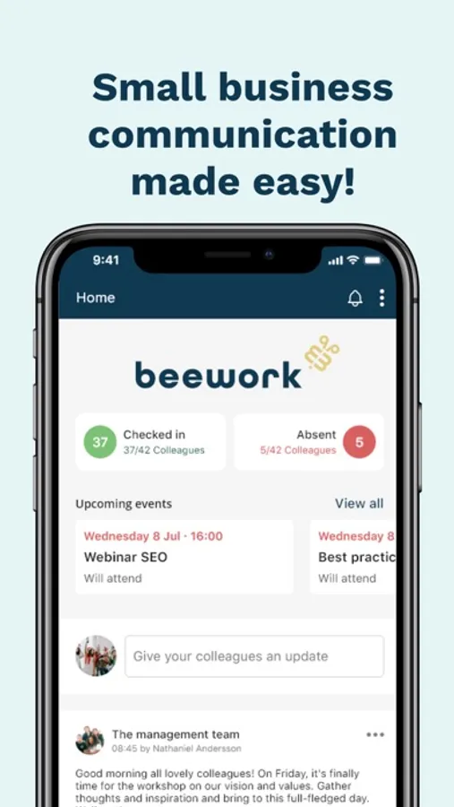 The app offers you and your workplace many benefits. Its functions include an information feed, events, chat and availability. These provide the basis for everyone to improve their internal collaboration and networking.