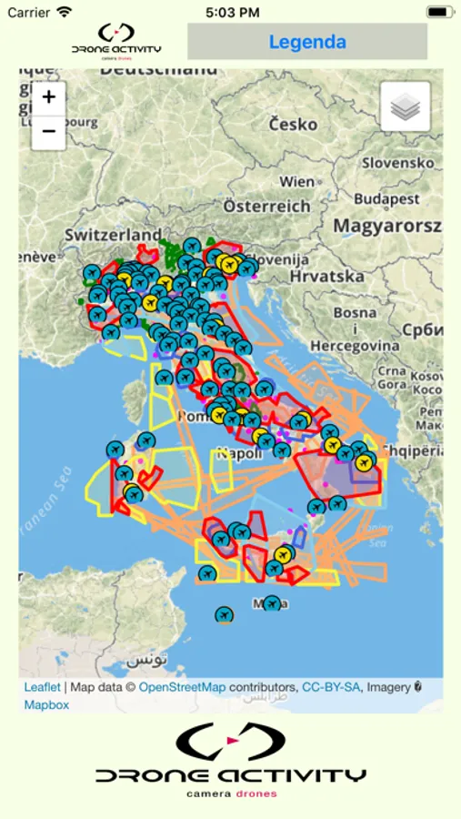 infatti ti basterà un singolo tocco sul tuo telefono per sapere in che zona stai volando e se sei a norma di legge!!