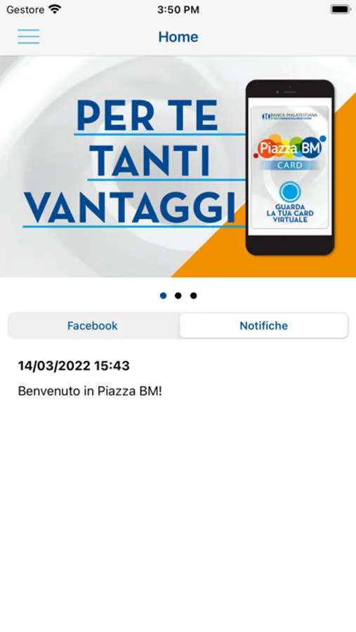 Sulla stessa App è possibile virtualizzare la Piazza BM Card, la carta dedicata a Soci e Clienti di Banca Malatestiana che consente di accumulare sconti, cashback e vantaggi presso gli esercenti aderenti al circuito Piazza BM.