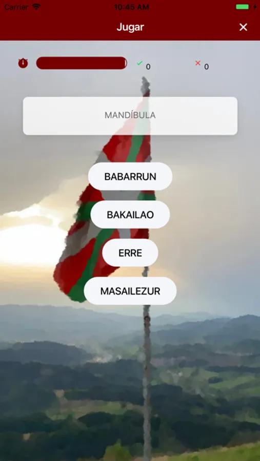 Se trata de un juego que te muestra palabras tanto en euskera como en castellano al azar y tienes que acertar el máximo número de palabras en dos minutos.