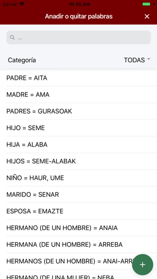 Puedes clasificar las palabras en categorías (meses, días de la semana, colores, partes del cuerpo.. etc) y elegir que categoría quieres practicar, o bien jugar con todas las palabras, también puedes crear tus propias categorías para que aprendas vocabulario de la manera que tu quieras.