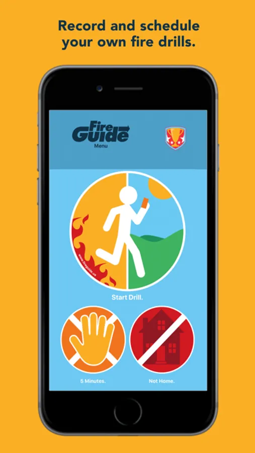 Once set, the drills run regularly, so the children in your care can practice fire safety repeatedly until they master each drill. When it’s time for a drill, your child gets a notification on their phone or tablet to open FireGuide. All they have to do is tap the button to start the drill, and the instructions you recorded for them begin to play. Once they make it to safety, they tap the button again to end the drill and that drill time is saved for you to view later. Your kids are challenged to do better with every drill and collect achievement badges over time! Easy, simple, fun, and free.