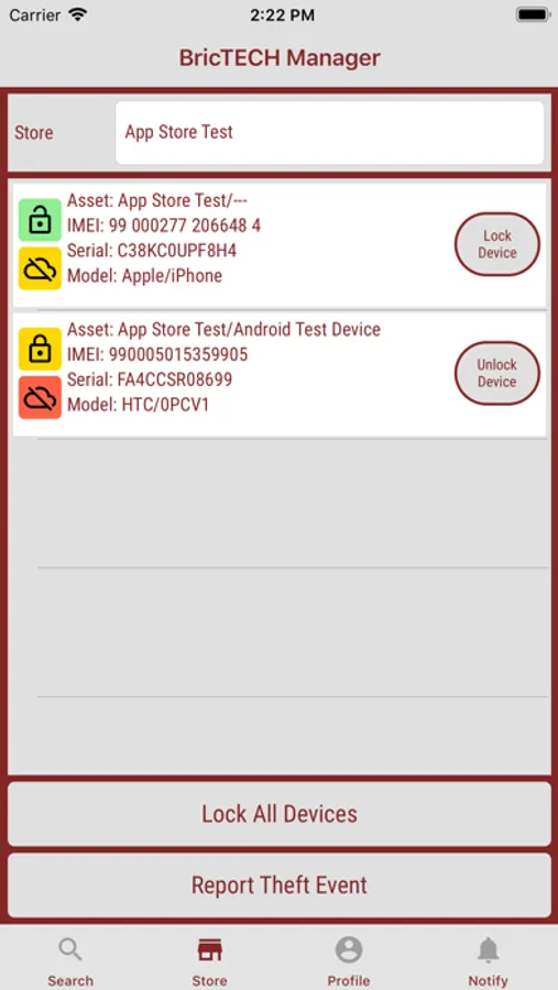 Manually lock or unlock selected devices or all devices in a store in addition to viewing device information.