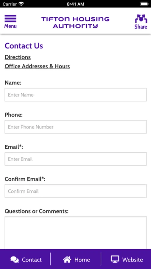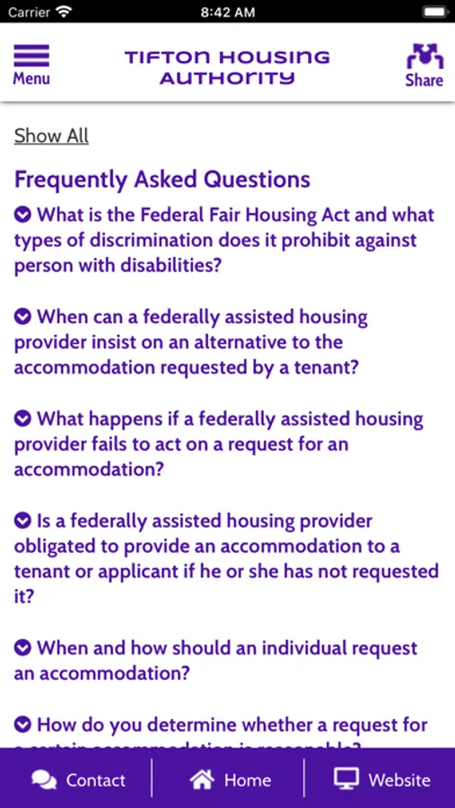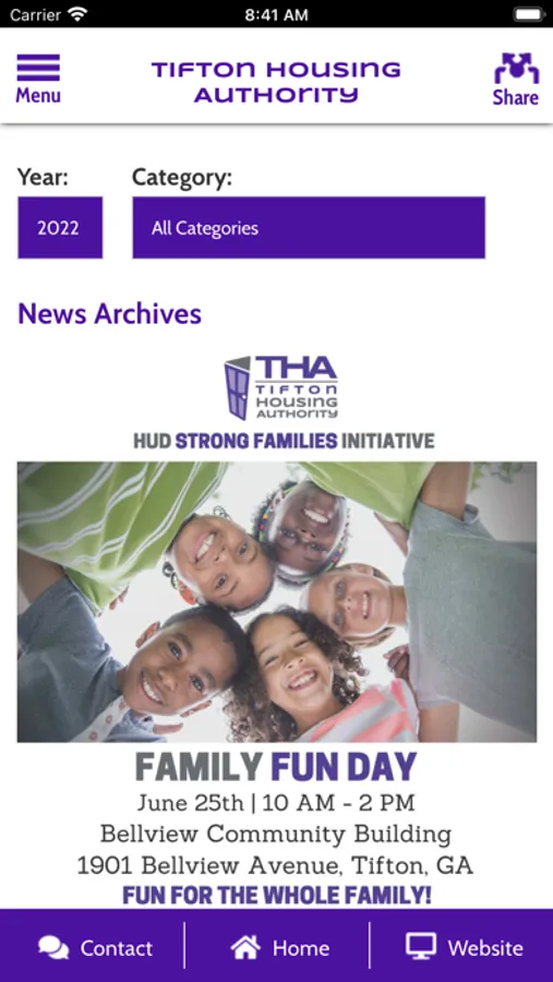 The app has public information for latest news, upcoming events, media galleries, property locations, alerts, FAQ's and more. Contact us messages can be sent to the Housing Authority. For registered users the app provides CMS access.