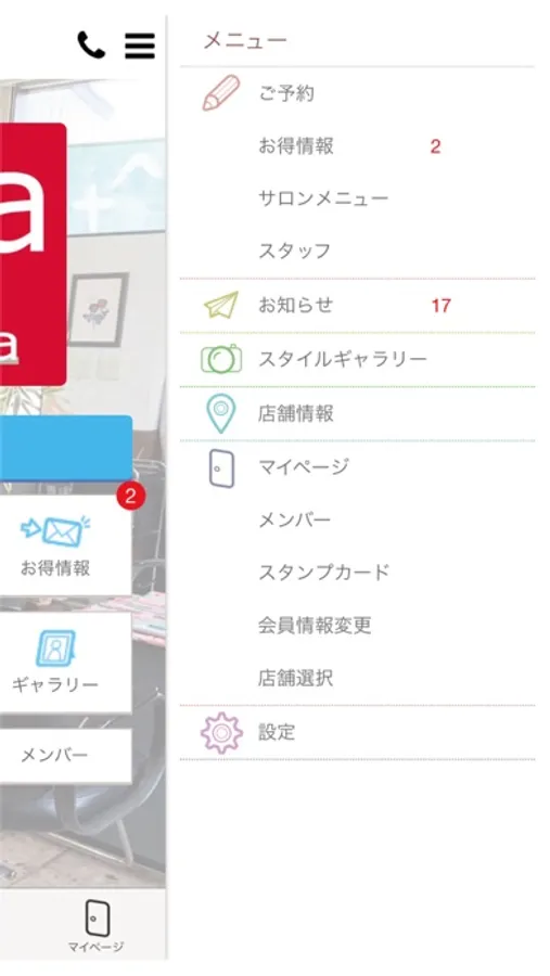 ▼マイページ機能で来店履歴や予約履歴がポイント保有数が確認できます。