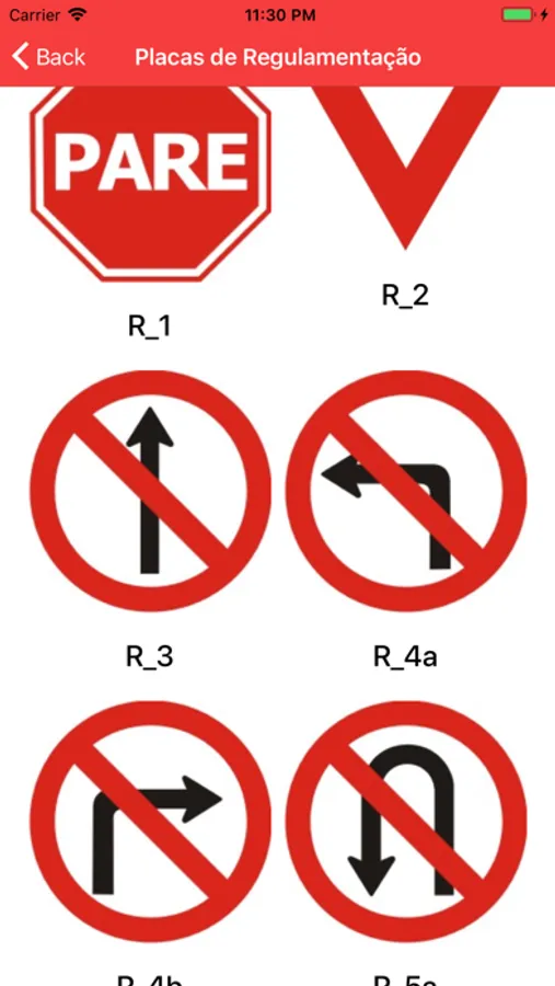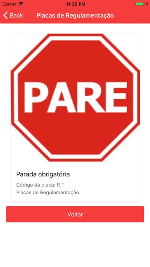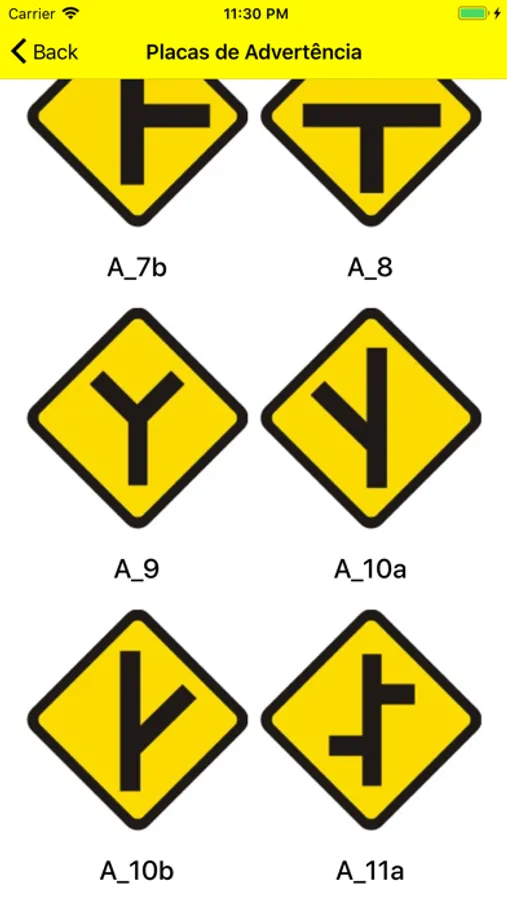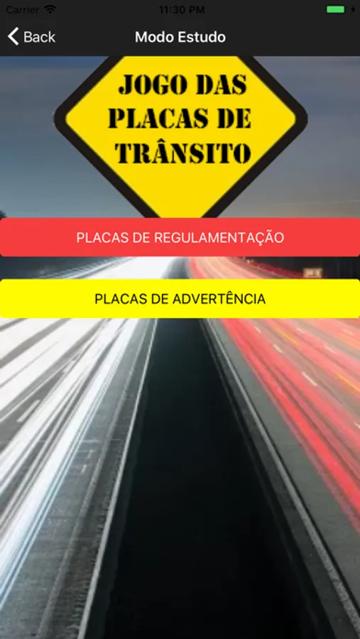 O jogo também possui o modo estudo onde são disponibilizados imagens em boa qualidade das principais placas de transito além do significado e o código de referencia de cada uma.