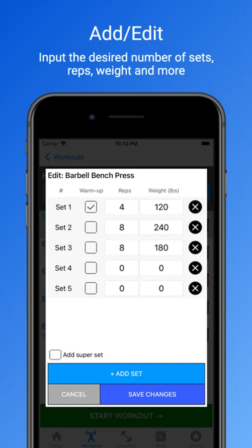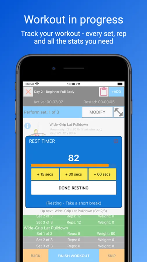 Track it all during your workout so that you can get the most out of every workout session. Whether you're a beginner or an experienced lifter we make it easy to record and view your sets, reps, weight lifted and more!