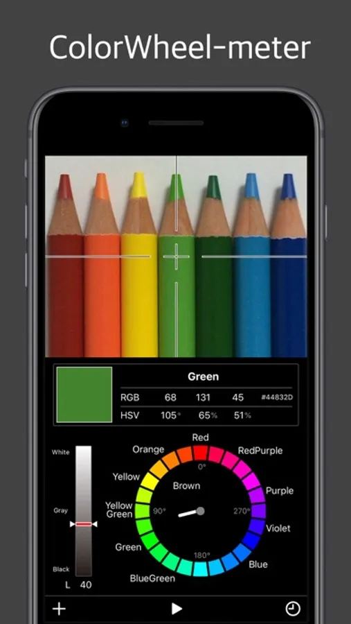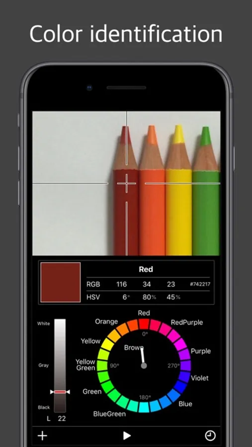 Align the crosshair cursor at the center of the camera image with the color you want to know,