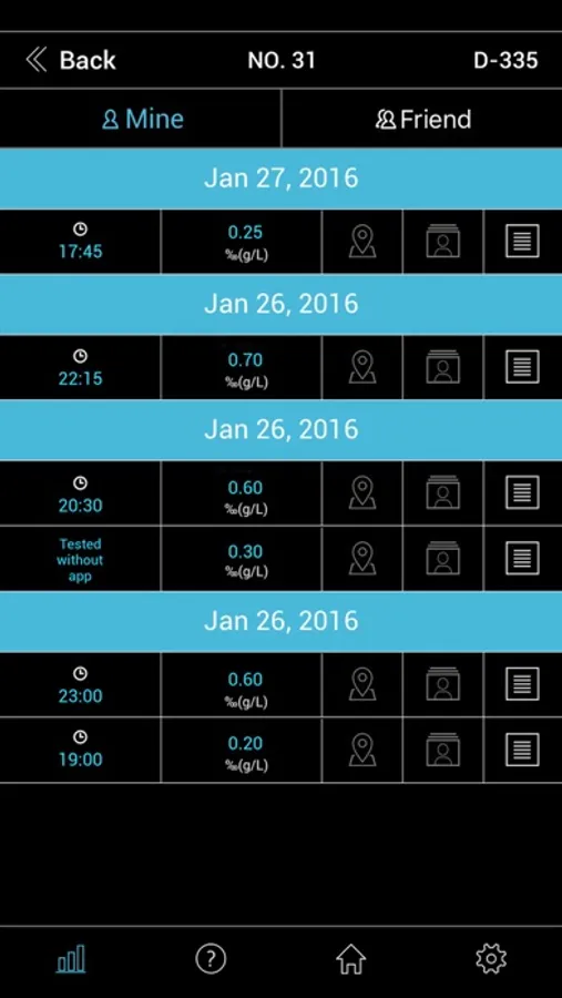 - Bluetooth connection to the Alcofind smartphone breathalyzers