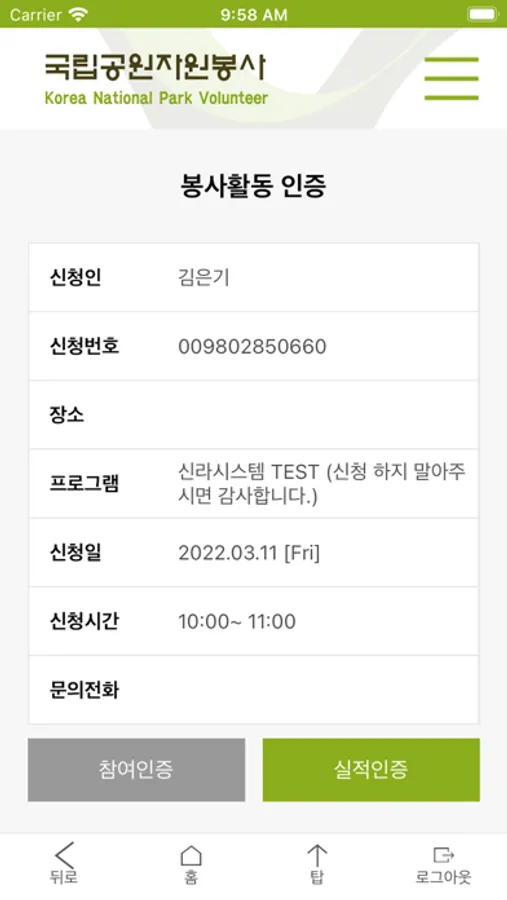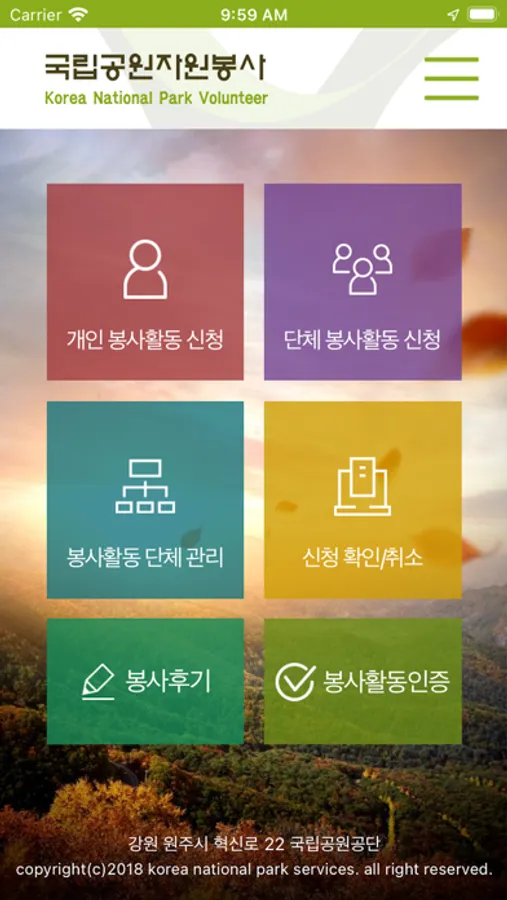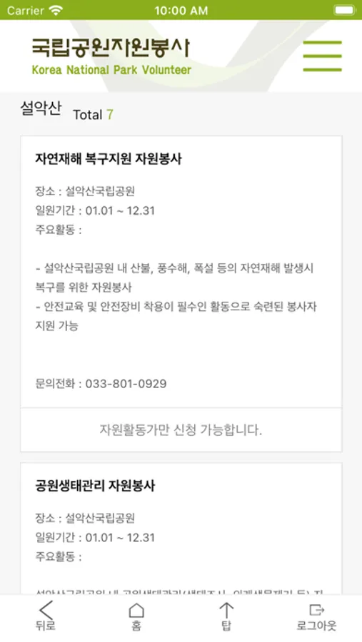 스마트폰어플리케이션은 국립공원을 찾는 자원봉사자들에게 봉사활동신청,