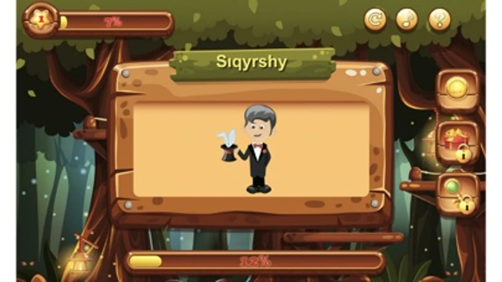 «Жасырын сөз» ойыны қазақ әліпбиінің латын графикасына негізделген нұсқасын үйренуге арналған.