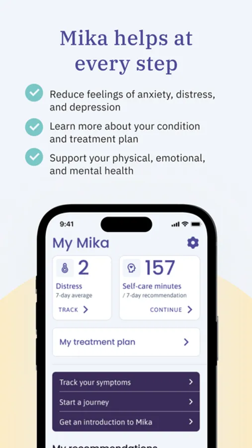Soothe Distress: Find solace and strength in Mika’s guided mindfulness journeys, developed in collaboration with psychologists to specifically address the emotional toll of cancer. Through immersive guided imagery sessions and interactive exercises, you'll cultivate resilience and inner calm that will help you navigate feelings of anxiety, depression, and fatigue with grace and determination.