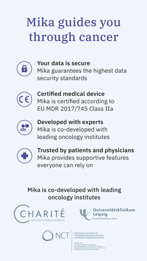 Mika is developed in collaboration with leading German oncology institutes and tumor centers to ensure you receive the best possible information.