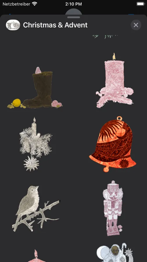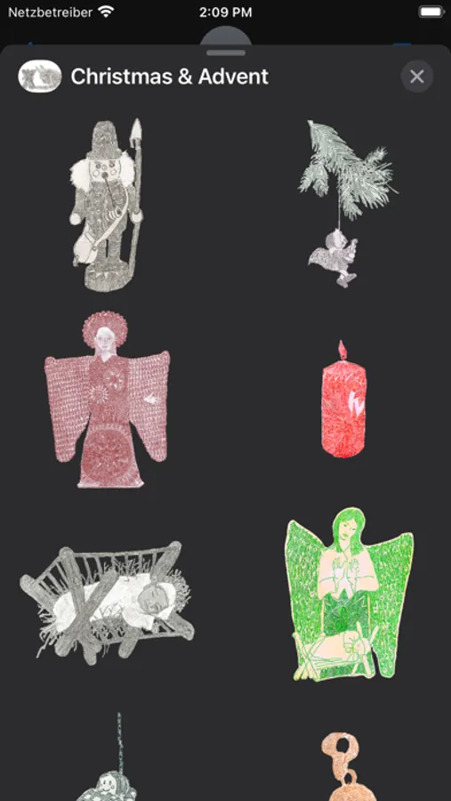 These tiny paintings of Christmas motifs where originally created by the German painter Frank Walka as illustrations for a collection of Christmas Carols published by Carus/Reclam.