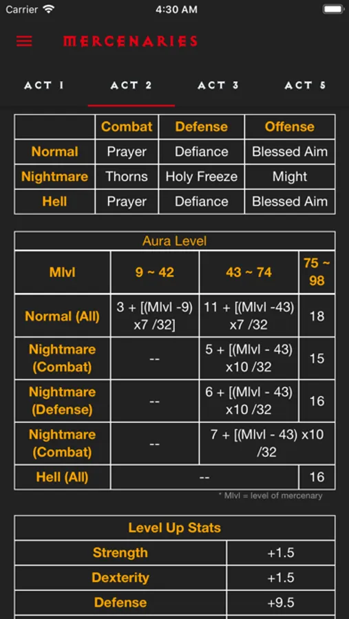 -- Mercenaries - Skills, Aura Levels, Level up Stats etc