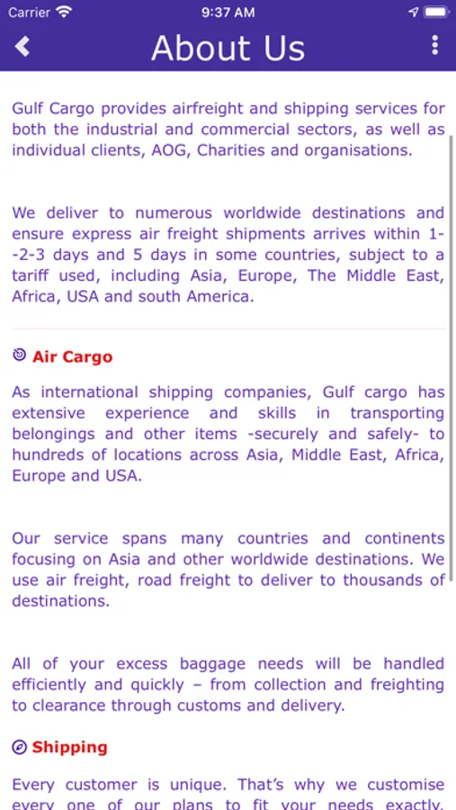 Welcome - Gulf Cargo provids airfreight and shipping services for both the industrial and commercial sectors, as well as individual clients, AOG, Charities and organisations. We deliver to numerous worldwide destinations and ensure express air freight shipments arrives within 1--2-3 days and 5 days in some countries, subject to a tariff used, including Asia, Europe, The Middle East, Africa, USA and south America.