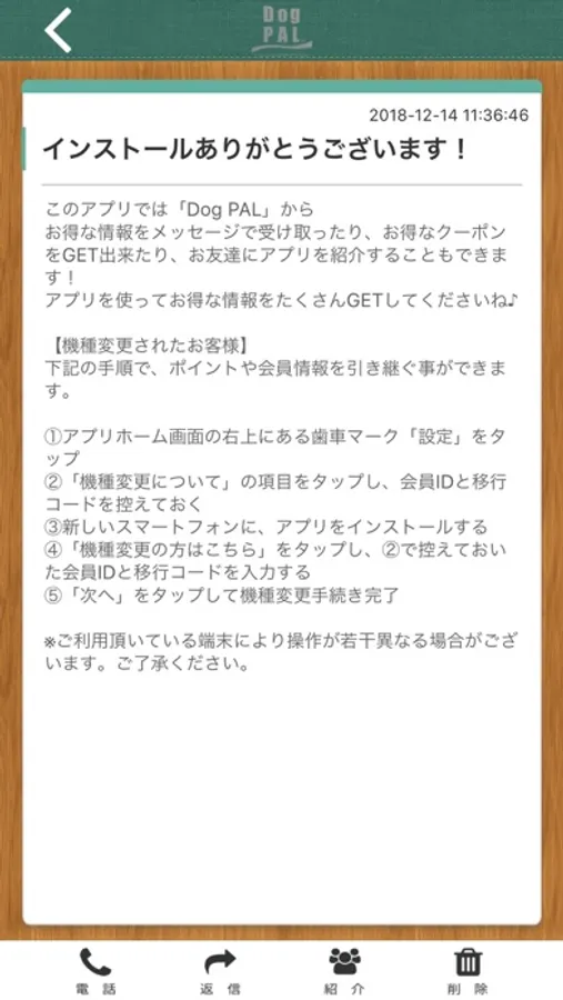 このアプリでは、Dog PALの最新情報の受け取りや便利な機能を使う事ができます。