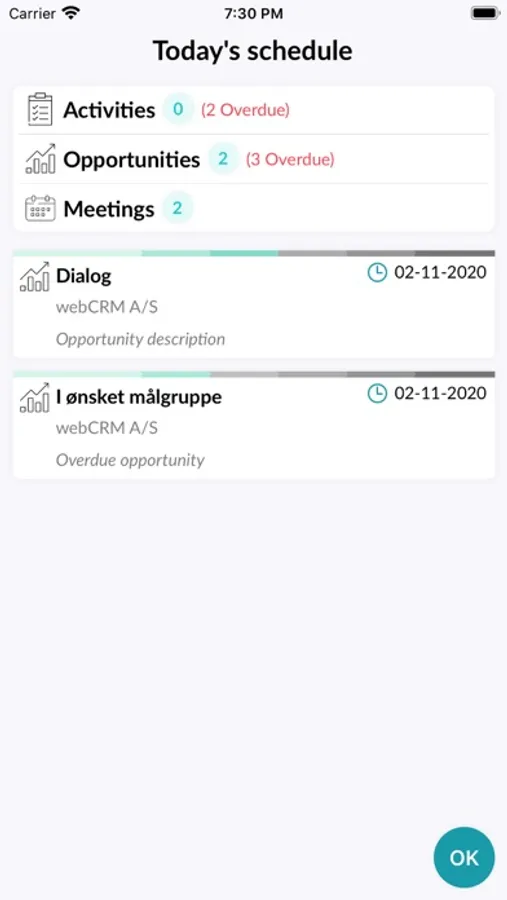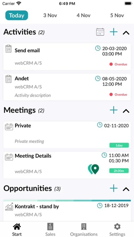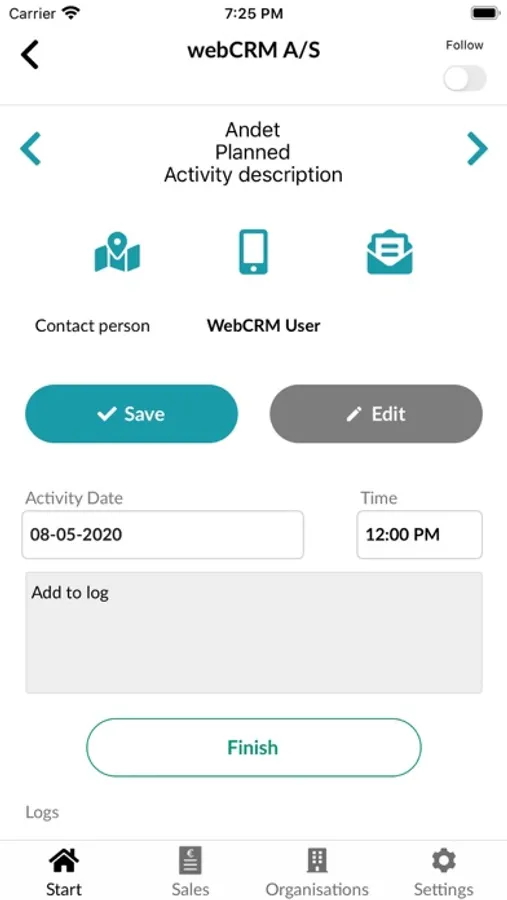 With the webCRM app you have easy access to all your existing activities. That way you are always up to date on todays tasks whether planning your day from the office or off site. Manage your day with the clear overview of your activities, view the details of any meeting and easily access any contact in webCRM.
