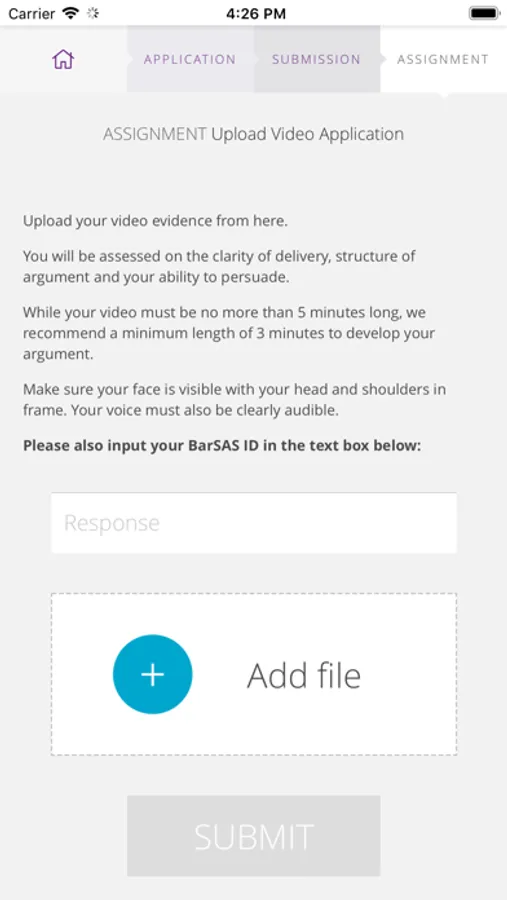 You must have first submitted your written application for the BTC on bpp.com (Part 1). Please ensure you have read the full video rules and guidance here: bpp.com/courses/law/btc-barrister-training-course