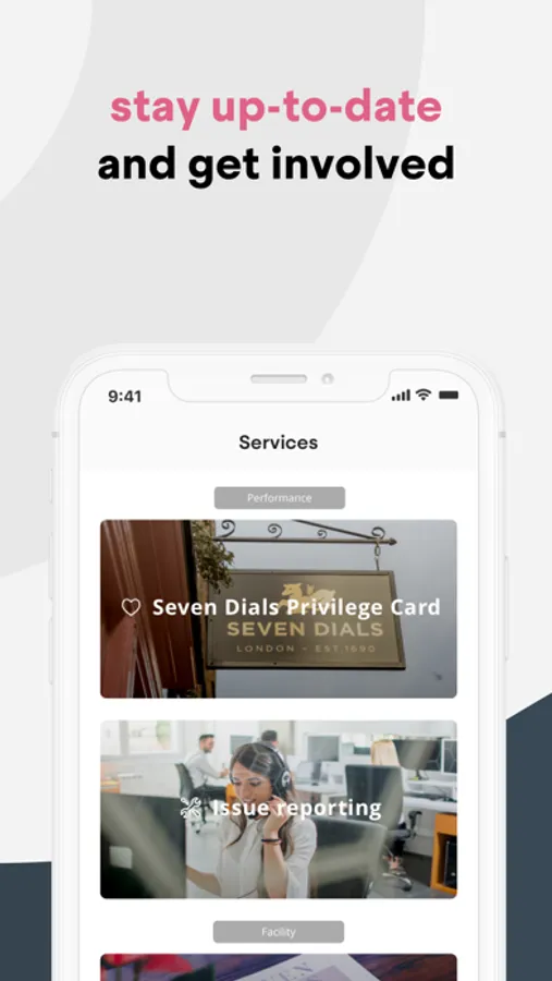 Seven Dials Community allows you to settle all sorts of practicalities in an instant and to stay up-to-date with the latest Seven Dials news. It also offers the opportunity to actively take part in the Community, for instance by taking surveys or sharing thoughts with other tenants.